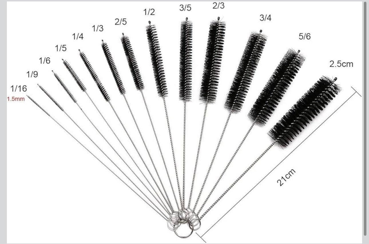 - 【Varios Tamaños】- Paquete incluido 13 cepillos de tubo de nylon, diferentes diámetros de 1/16 in a 1 in, todos los cepillos son 8.2 pulgadas de largo